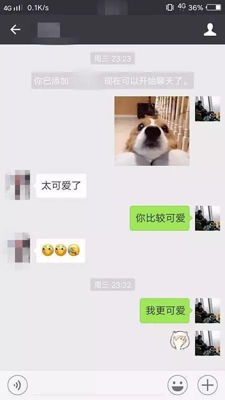 老規矩,用可愛的狗狗的動態圖開展和女孩子的對話。