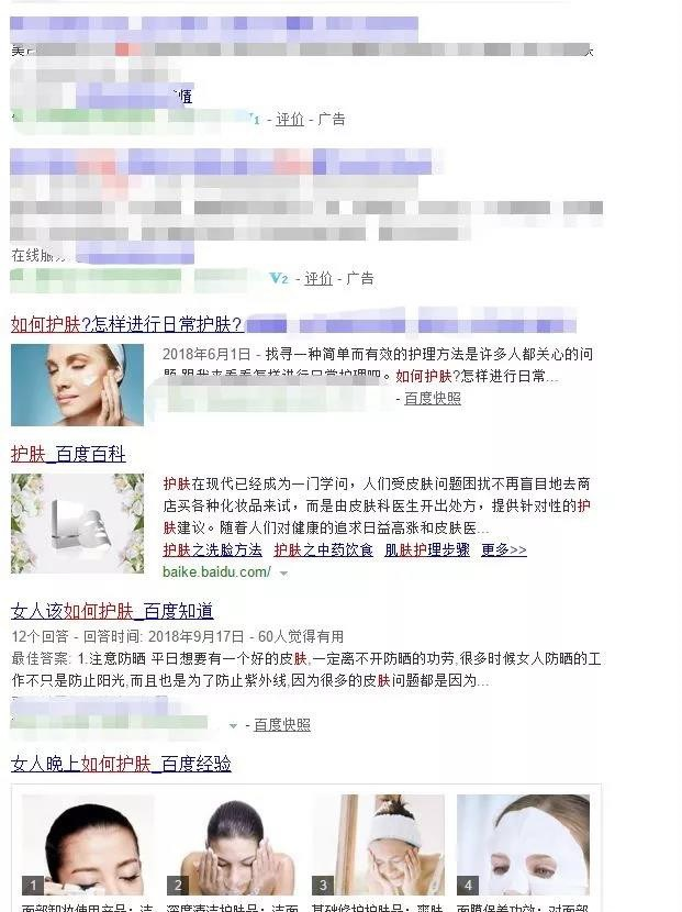 比如說,我們在百度上搜保養(yǎng)、護膚這一類的詞。