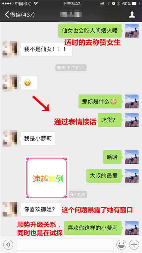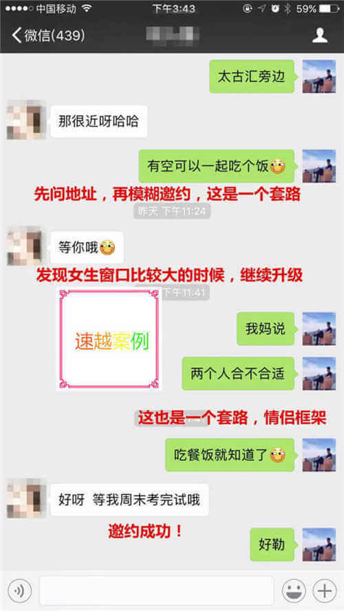 兄弟們可以通過這個案例,學會如何去引導出女生的窗口,順勢升級關系,再用一個小套路把女生約出來。