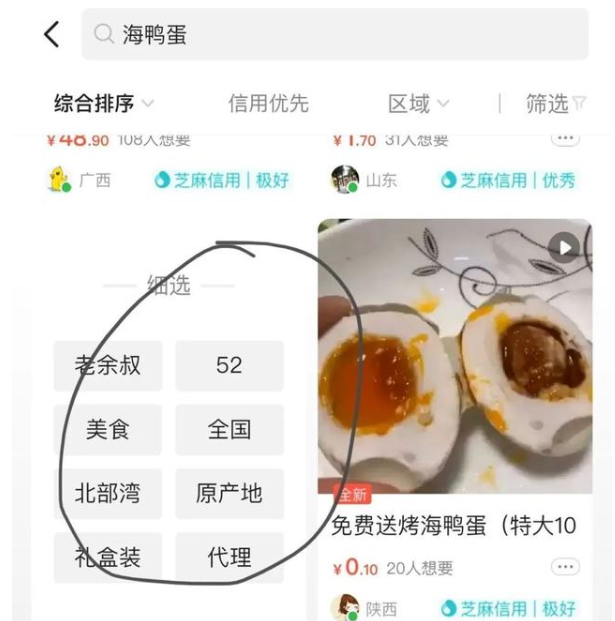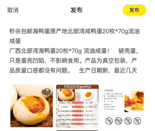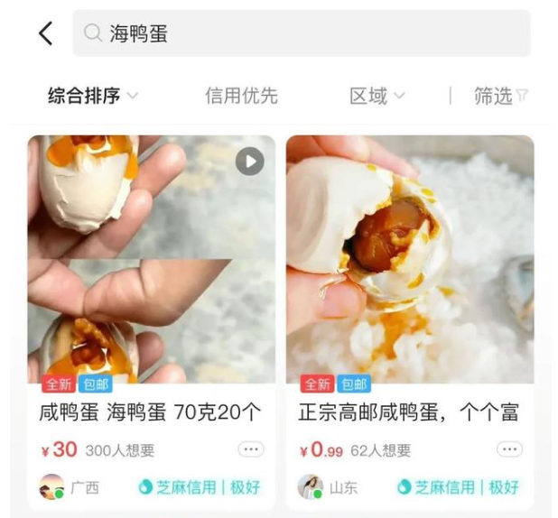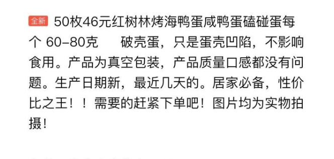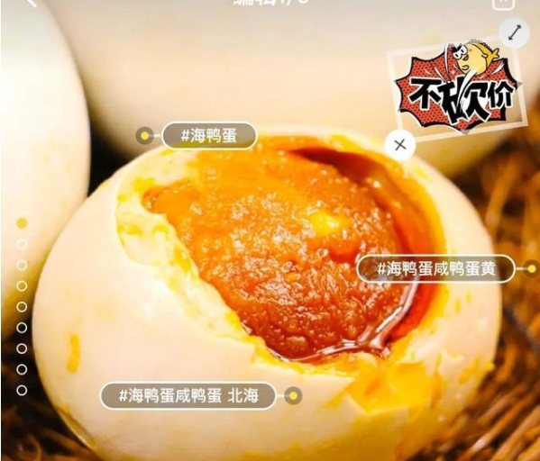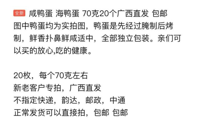 舉例:秒殺包郵海鴨蛋,原產(chǎn)地北部灣咸鴨蛋20枚*70克流油咸蛋。