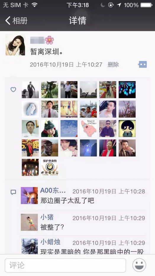 2、20天后,劇情轉折,發圈表示經濟人欲潛規則自己,現已走投無路。此時,一定會激起粉絲的憤怒、同情與共鳴。可自行扮演經紀人,制作如下截圖,使得事件真實可信。點擊即可顯示完整高清大圖。