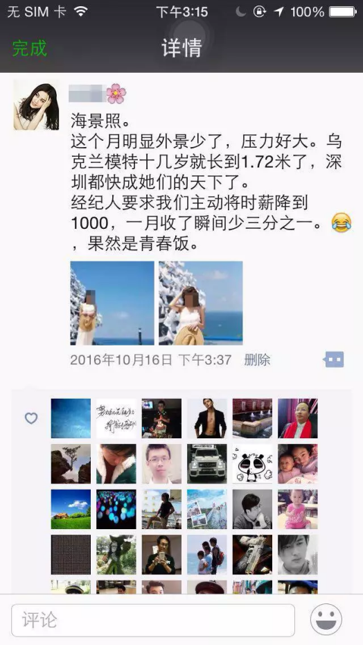 每天的朋友圈素材都是提前設計好,再根據要求去讓美女拍的